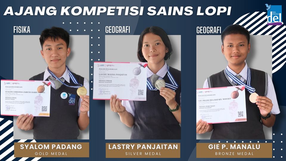 SMA Unggul Del menyampaikan selamat kepada tiga siswa atas raiahan di ajang Kompetisi Sains yang diselenggarakan oleh Lembaga Olimpiade Pendidikan Indonesia.
